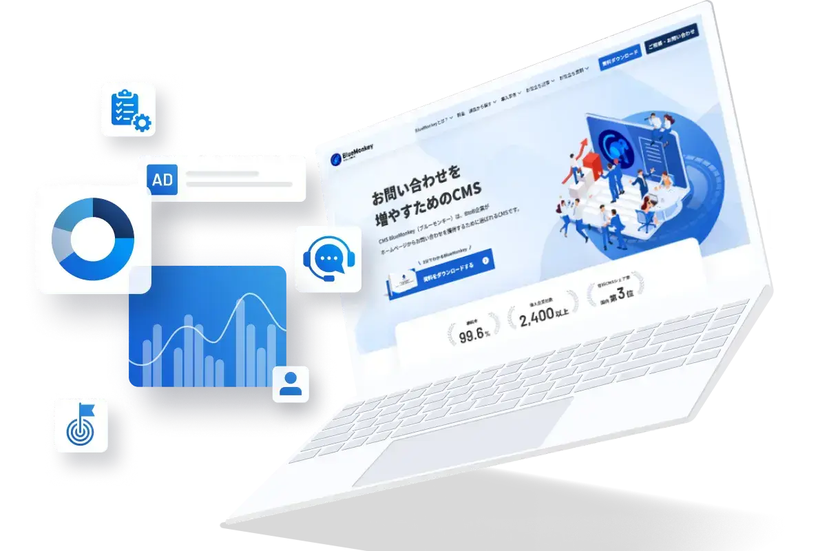 BlueMonkey(ブルーモンキー)は、Webサイトからのリード獲得と商談創出を加速させたい企業のための、Web運営プラットフォームです。