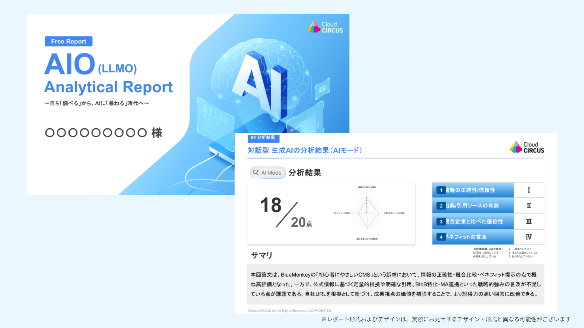 ※20点満点でスコアリング・各指標の評価結果のサマリー付き